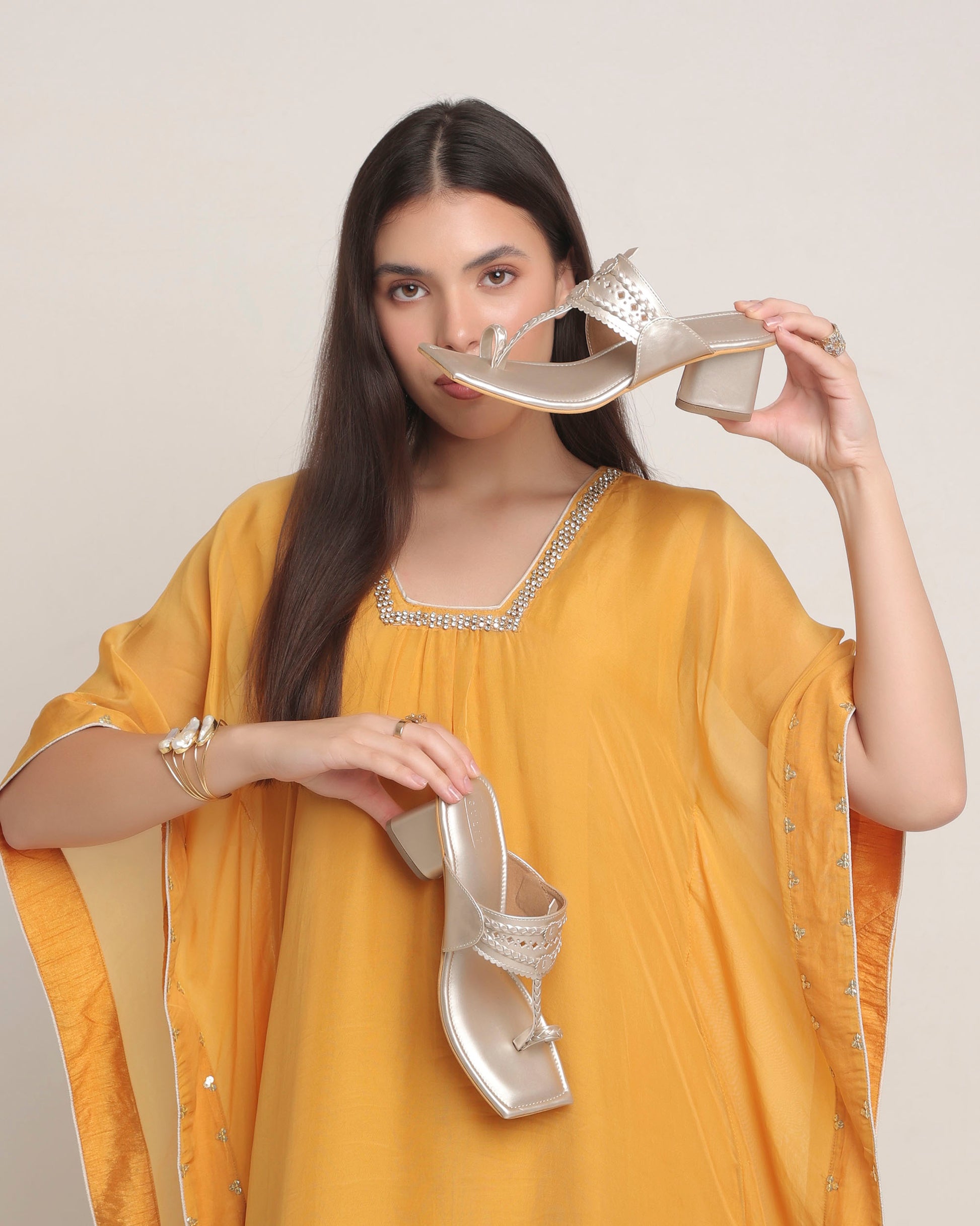 Pair them with a bright kurta set or a flowy kaftan for festive days, or dress them down with linen pants and a crisp white shirt for a chic everyday vibe. Add gold-toned jewellery to tie the look together and let your Sulit Kolhapuris do the talking