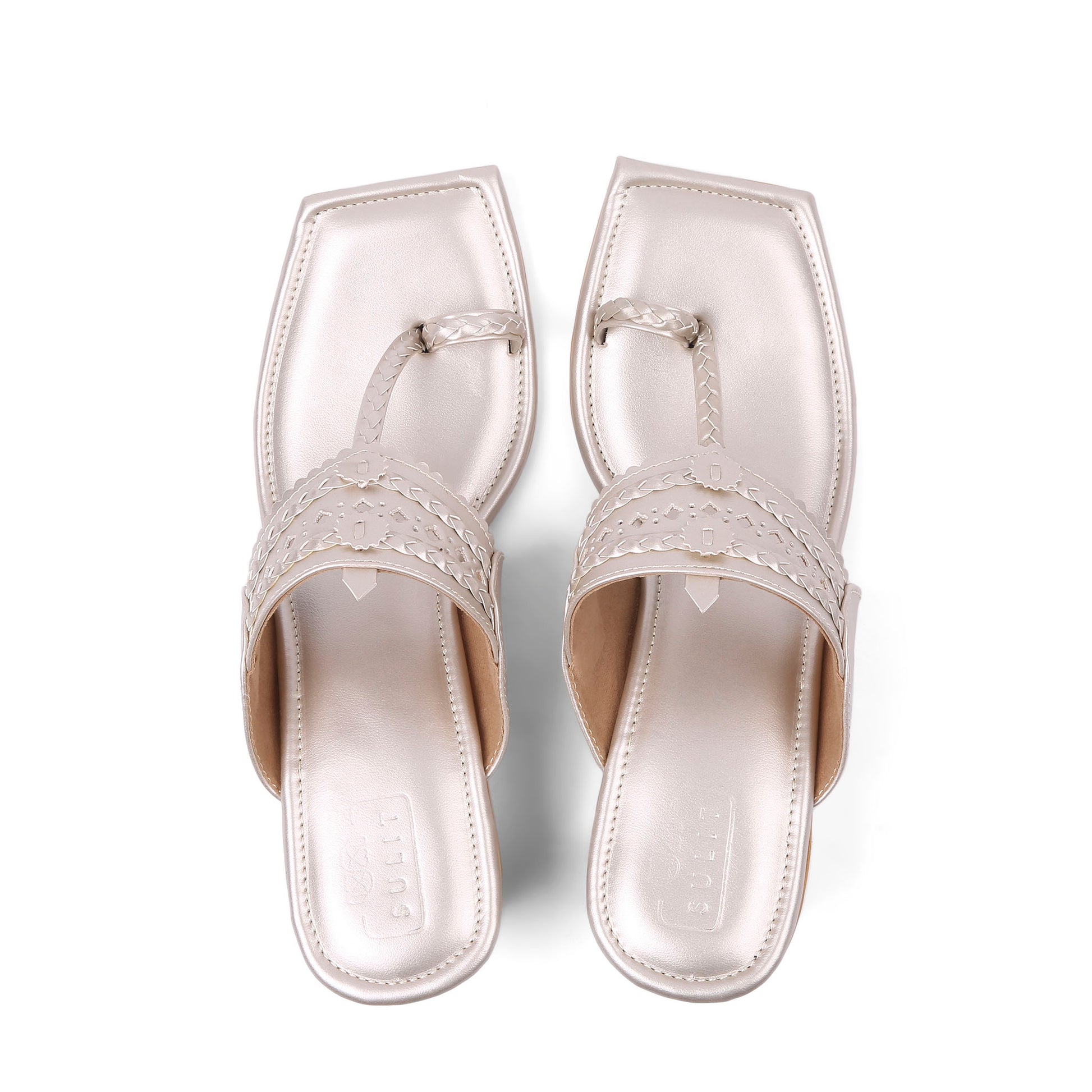 A blend of tradition and modern flair — these metallic Kolhapuris bring effortless elegance to every look.